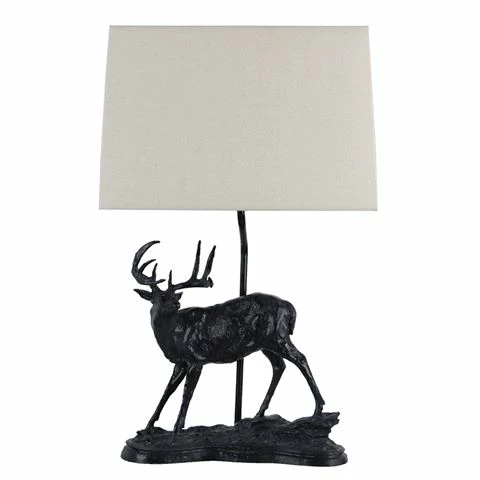 This stag shaped table lamp is a quirky addition to any space. Made of resin and topped with a angular rectangle white shade, this is one piece not for the light hearted.