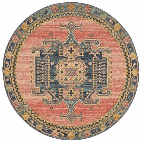 Shower your space with rustic appeal when you lay down this wonderful rug. Crafted from 100% polypropylene by skillful masters from Turkey, this Persian inspired rug features a distressed medallion center surrounded by geometric figures and botanical accent. It is detailed with faded ensembles and accents of rust and dark tone. Durability wise, it can stand up to high-traffic.