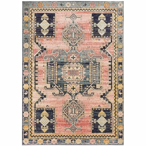 Shower your space with rustic appeal when you lay down this wonderful rug. Crafted from 100% polypropylene by skillful masters from Turkey, this Persian inspired rug features a distressed medallion center surrounded by geometric figures and botanical accent. It is detailed with faded ensembles and accents of rust and dark tone. Durability wise, it can stand up to high-traffic.